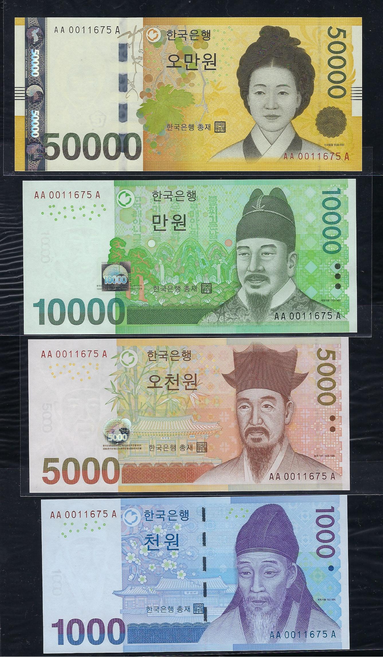 한국은행 신50000원 10000원 5000원 1000원권 초판AAA0011포인트4쌍둥이