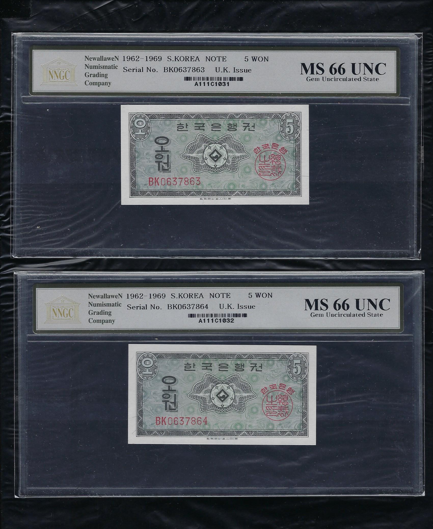 한국은행 5원권 영제 BK 기호 NNGC MS 66 UNC