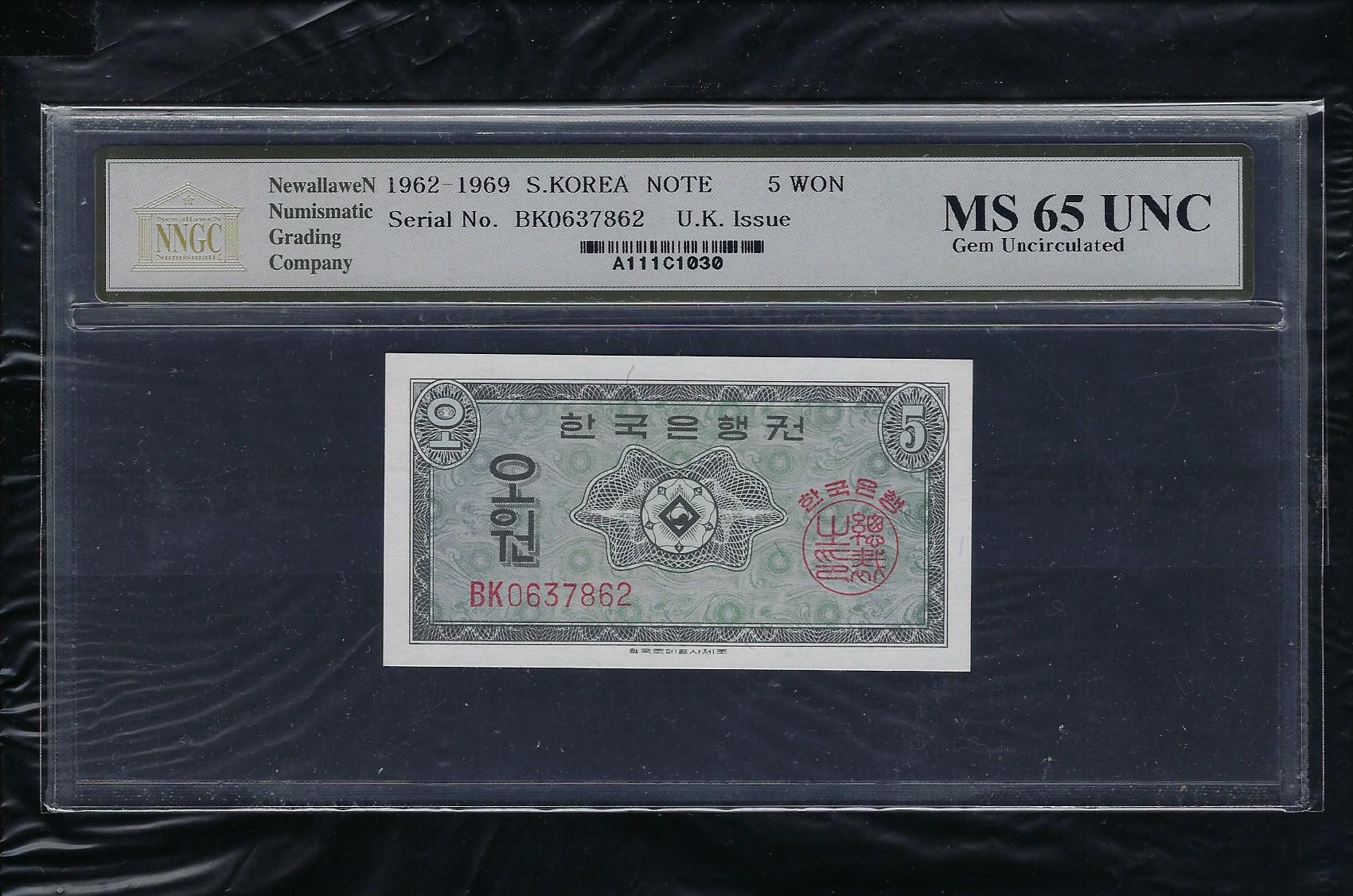 한국은행 5원권 영제 BK 기호 NNGC MS 65 UNC