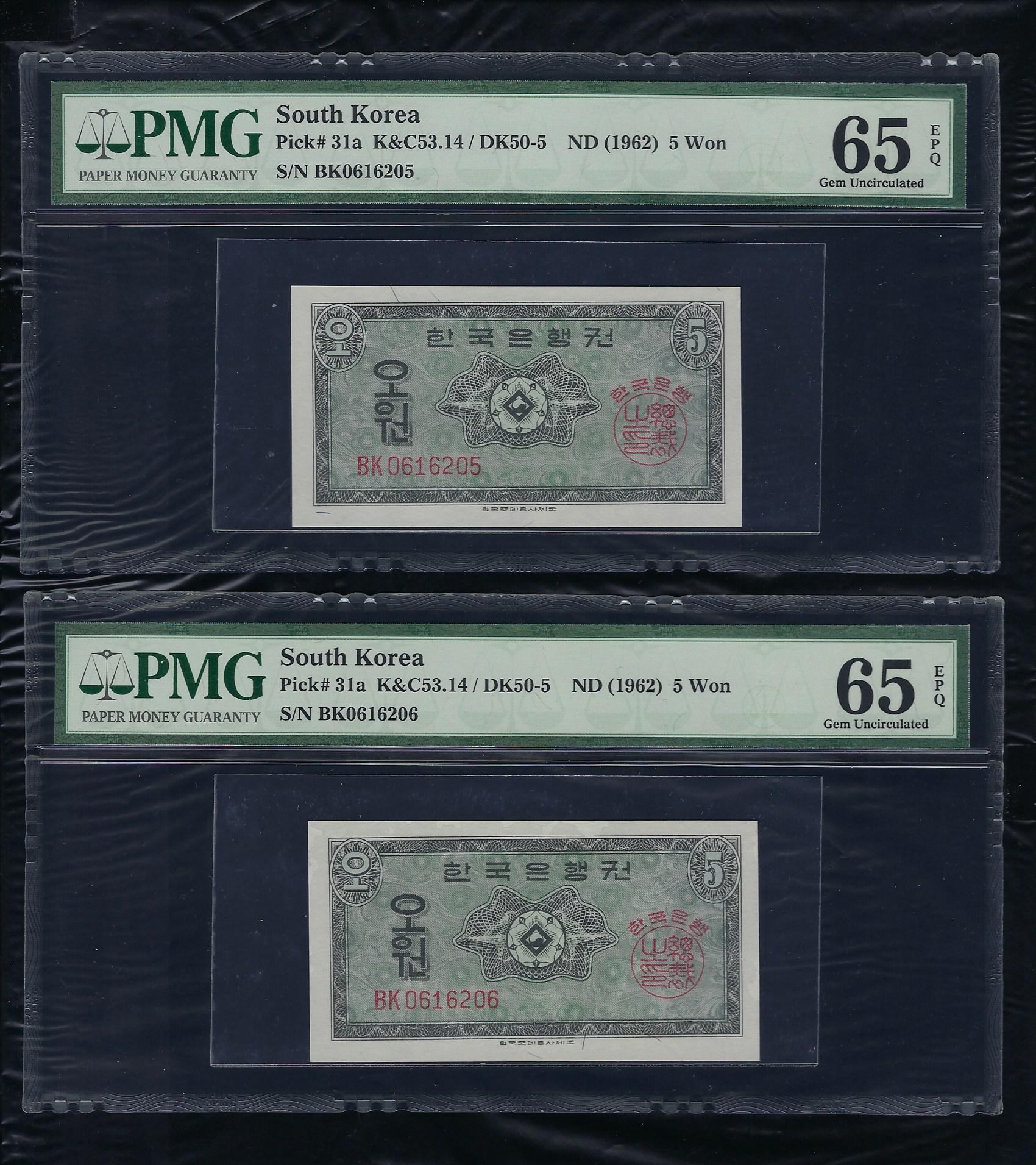 한국은행 5 원권 Bk 기호 영제 PMG 65 EPQ