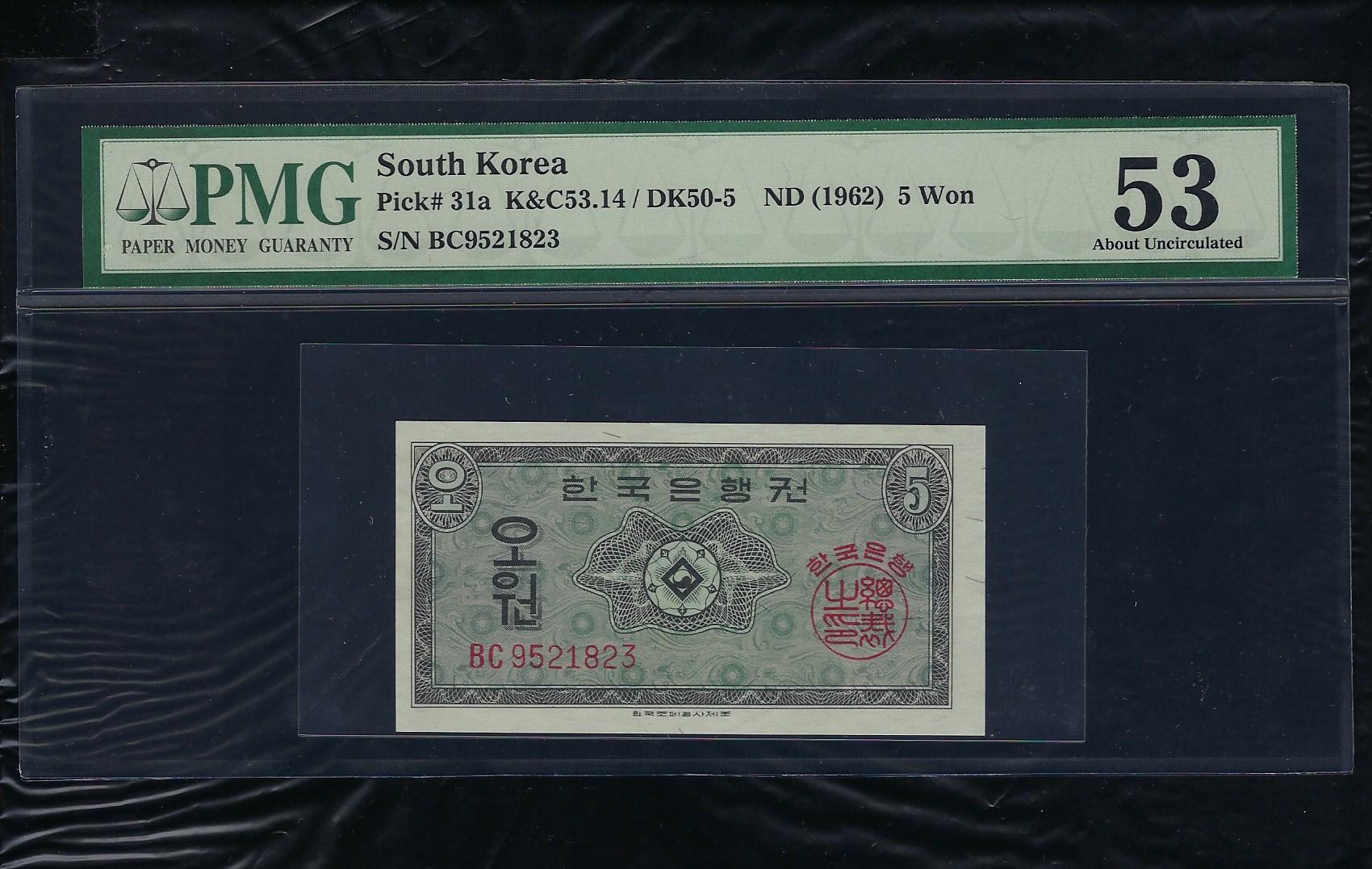 한국은행 5원권 BC 기호 영제 PMG 53
