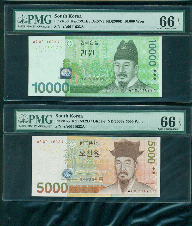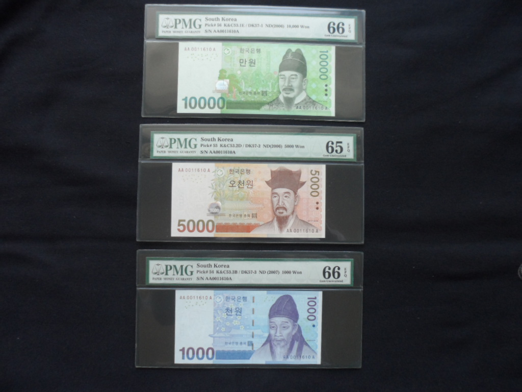 한국은행 신10000원 5000원 1000원권 초판AAA0011포인트3쌍둥이 PMG65-6