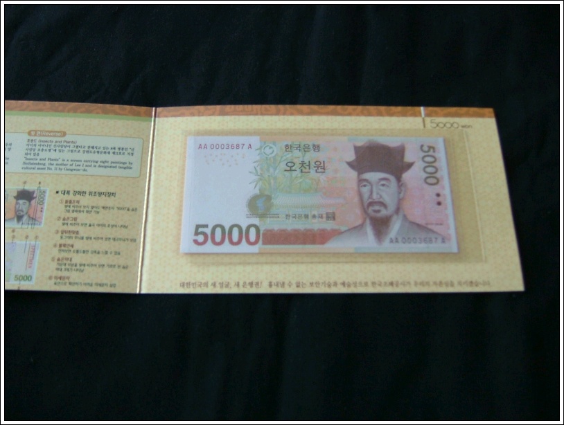 한국은행 마 5000 원권 초판 빠른번호 AAA 0003686A 번 경매첩