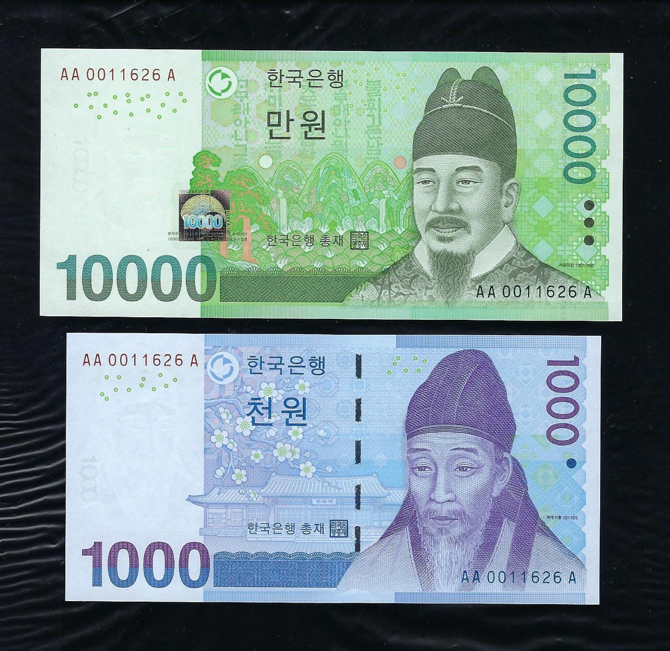 신권 만원 천원권 AAA 001포인트 쌍둥이 번호 set