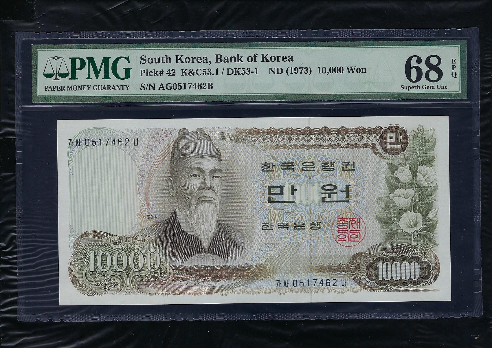 한국은행 1차 가 10000 원권 최고등급 PMG 68