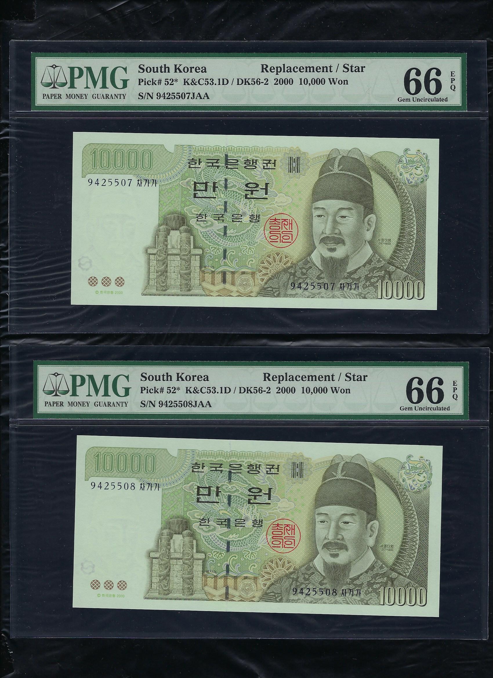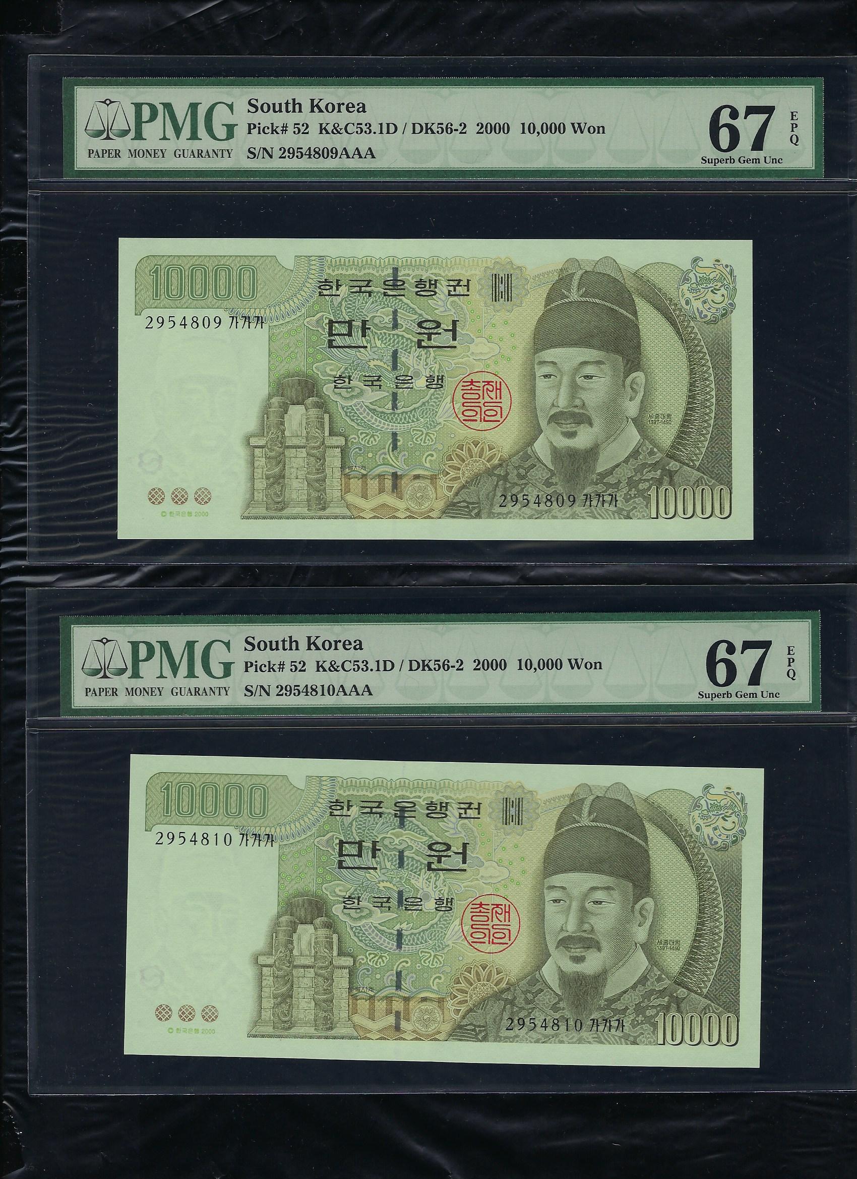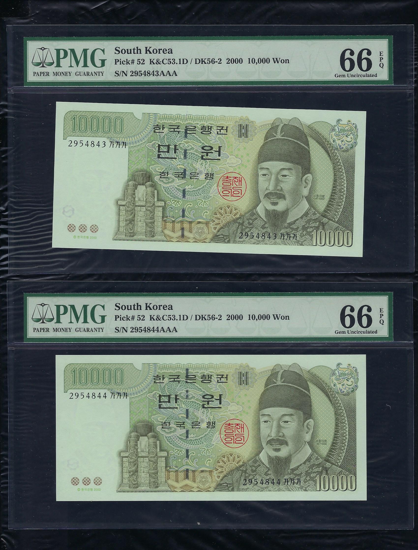 한국은행 마10000원권(5차) 2 394 394 준사다리노트 PMG 66