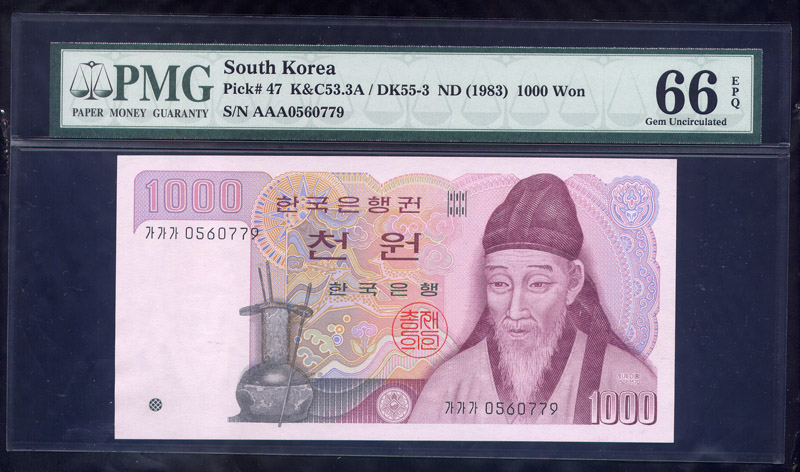 한국은행 나 1,000 원권 가가가 초판 똥돈 05포인트 PMG 66