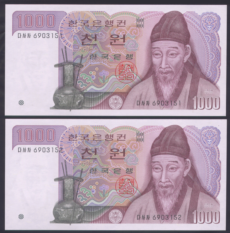 한국은행 나 1000권 초기인쇄 가다마