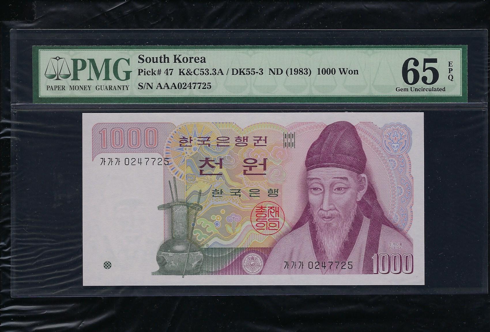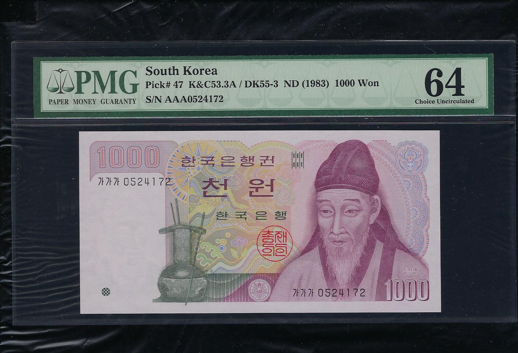 한국은행 나 1,000 원권 가가가 초판 똥돈 05포인트 PMG 64