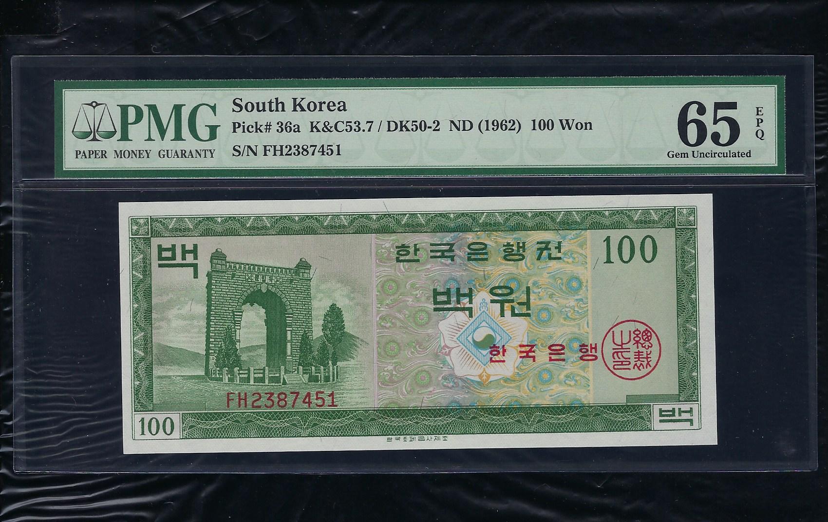 한국은행 가 100 원권 영제 PMG 66 EPQ