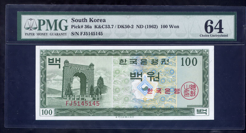 한국은행 가 100 원권 영제 PMG 64
