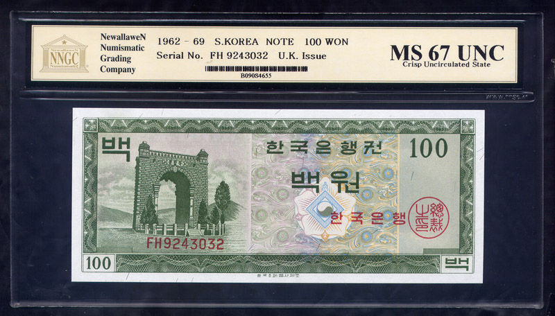 한국은행 가100 원권 영제 NNGC MS 67 UNC