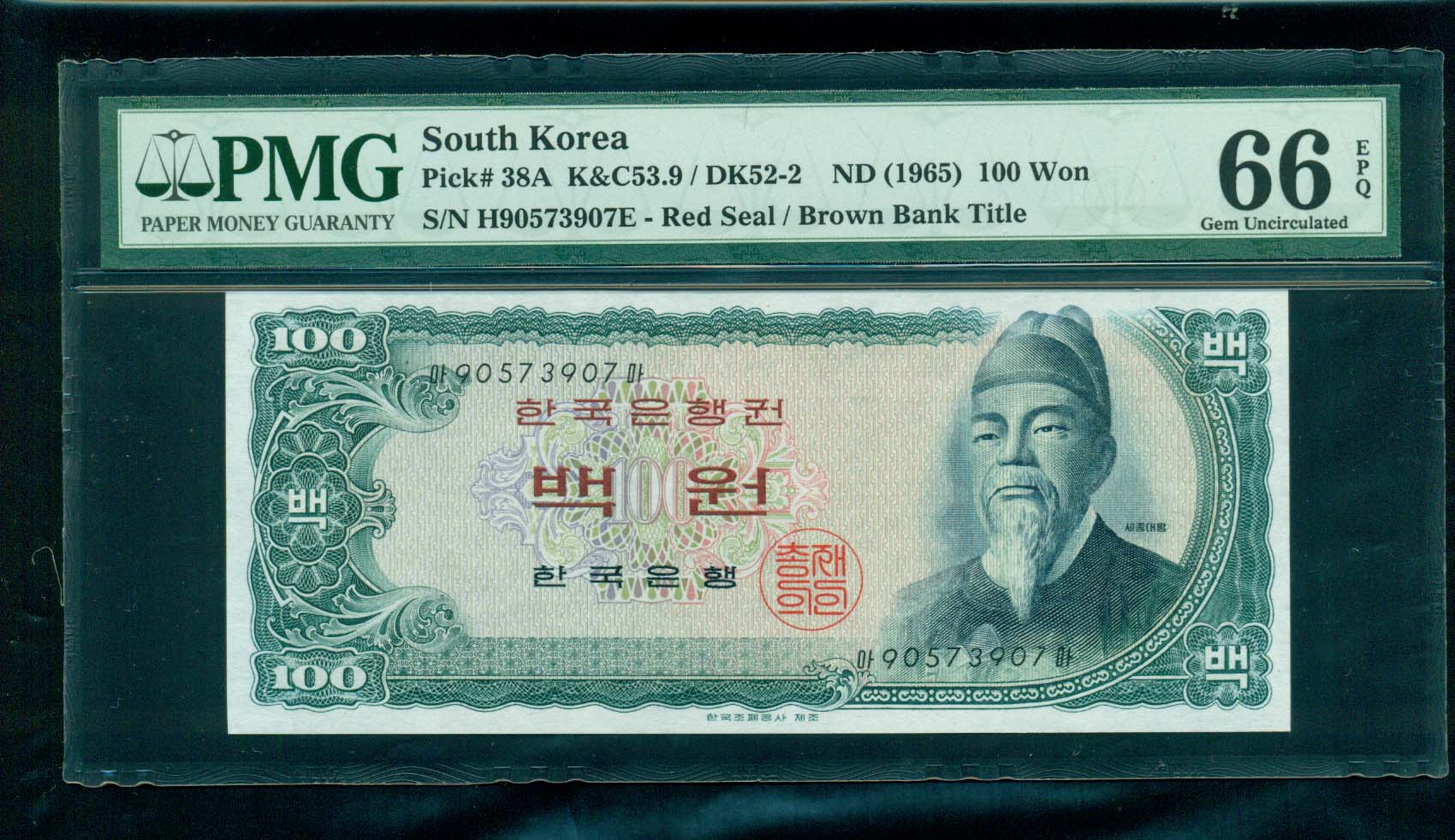한국은행 다 100 원권 세종대왕 60포인트 PMG 66 EPQ