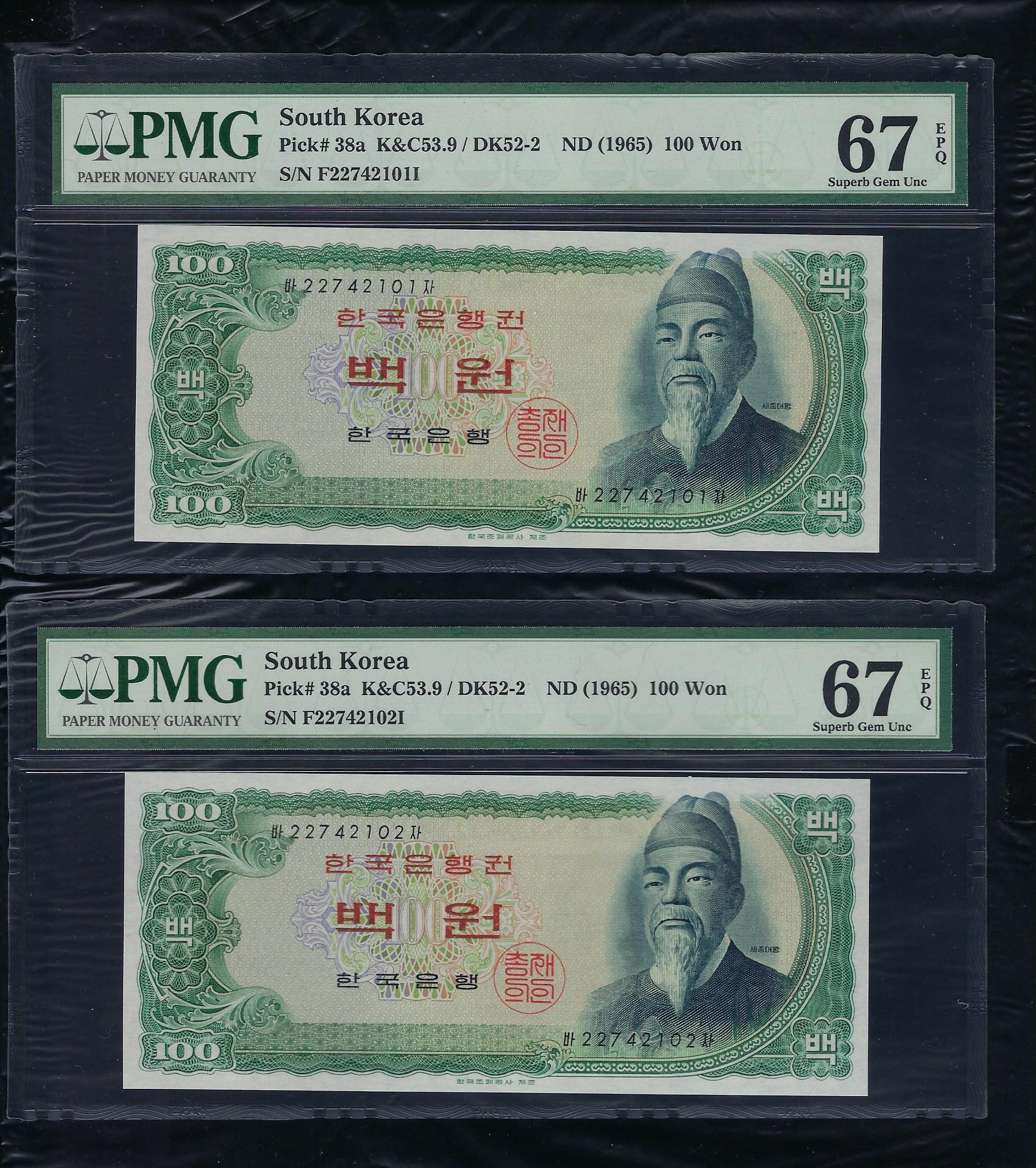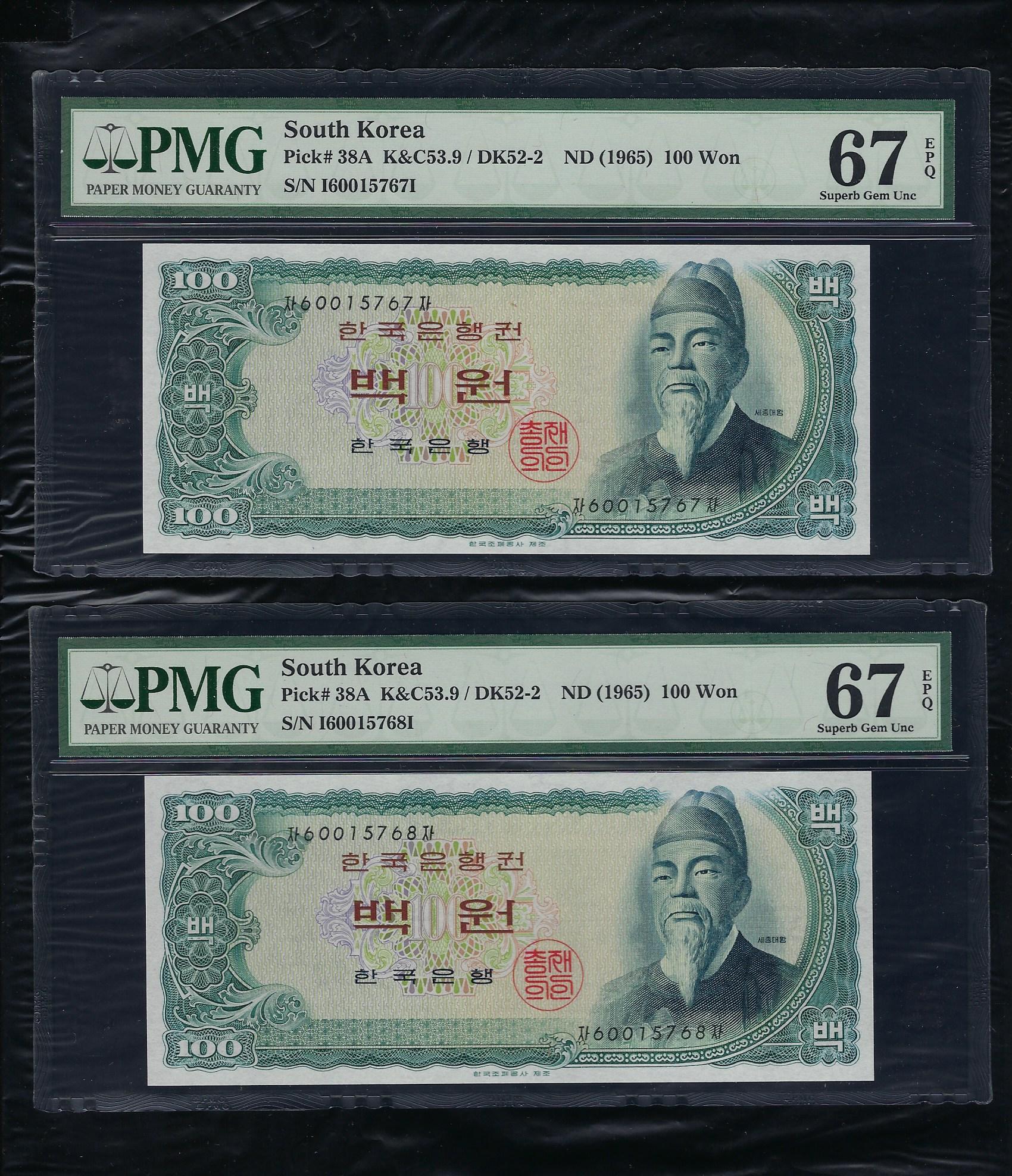 한국은행 다 100 원권 세종대왕 90포인트 PMG 67 EPQ