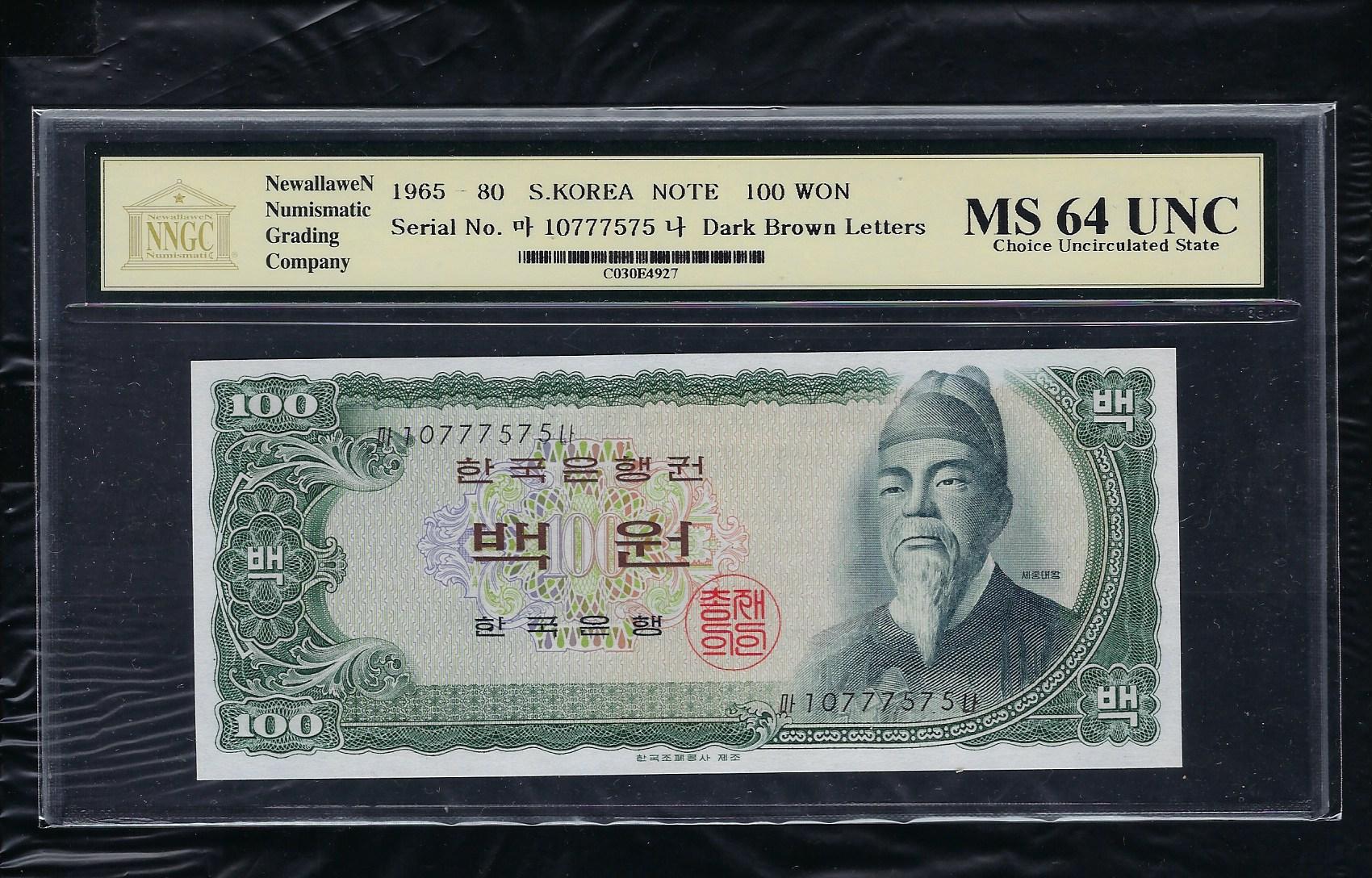 한국은행 다 100 원권 세종대왕 밤색중기인쇄 10포인트 NNGC MS 64 UNC
