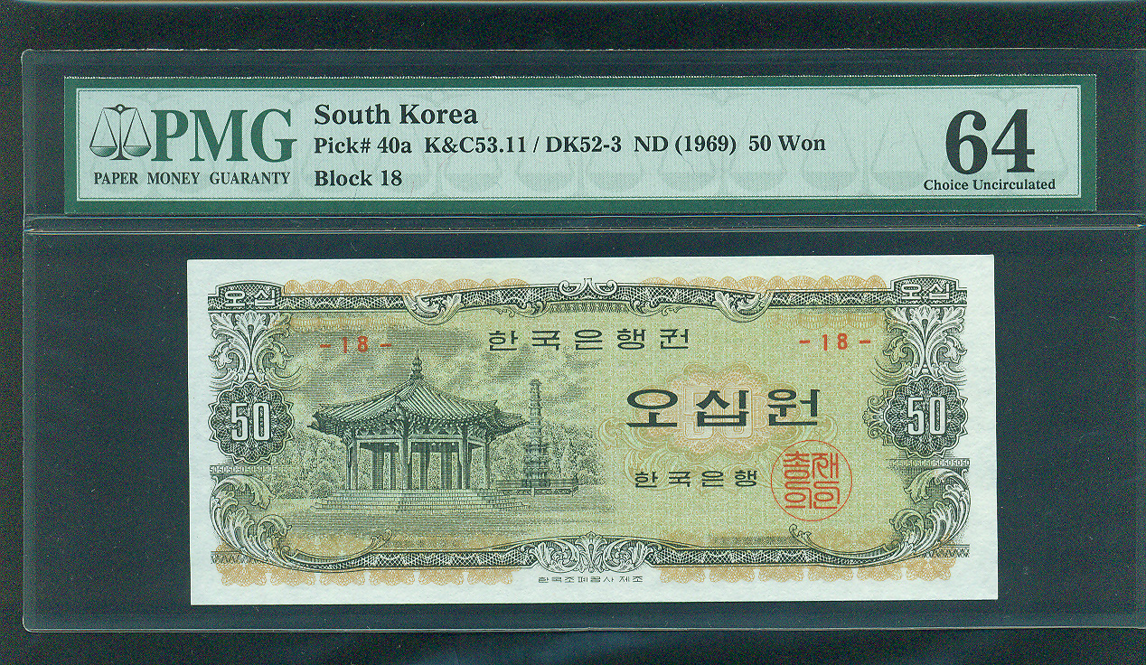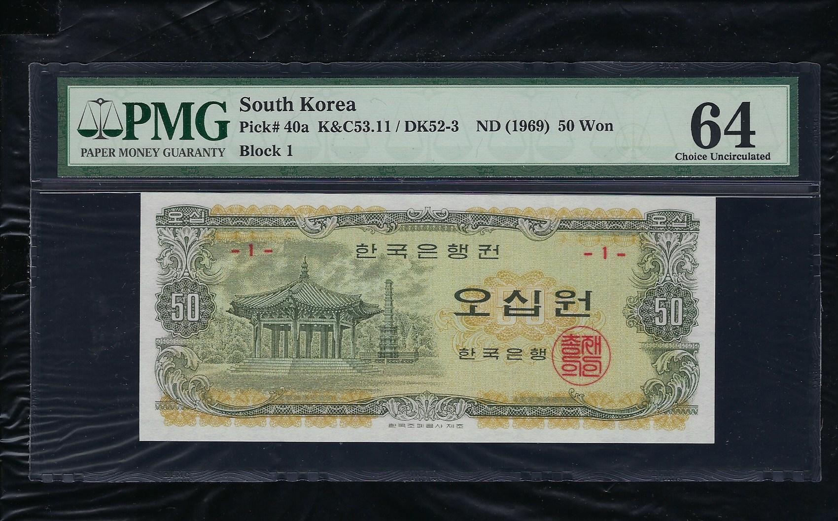 한국은행 나 50원권 팔각정 초판 1번 PMG 64