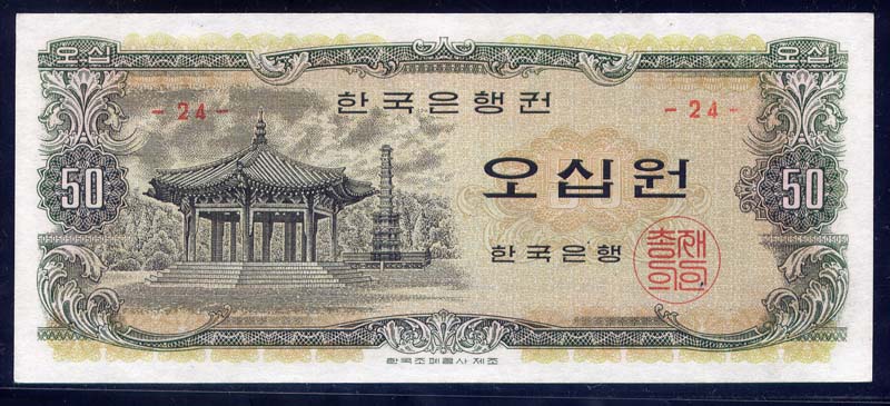 한국은행 나 50원권 팔각정 24번 완전미사용품