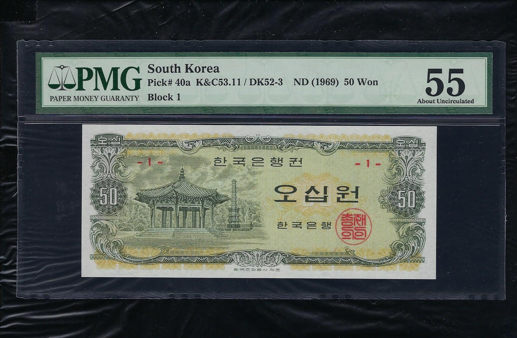 한국은행 나 50원권 팔각정 초판 1번 PMG 55