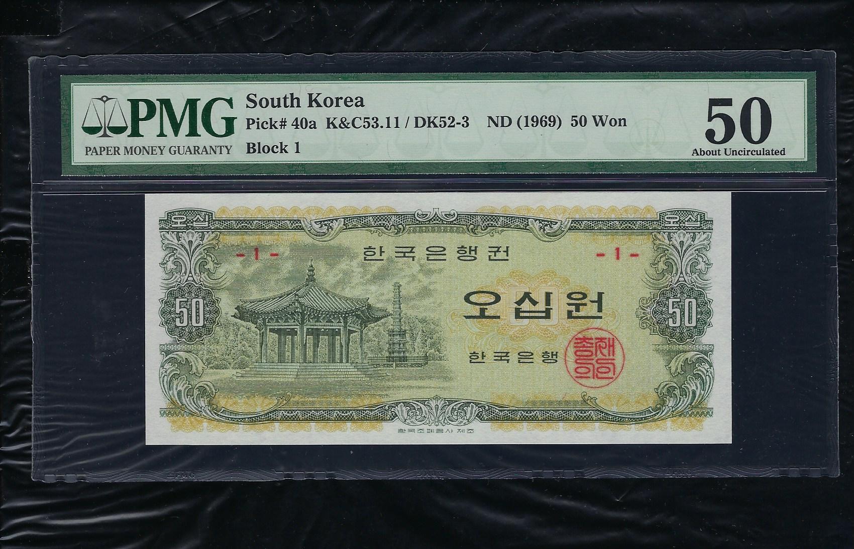 한국은행 나 50원권 팔각정 초판 1번 PMG 50