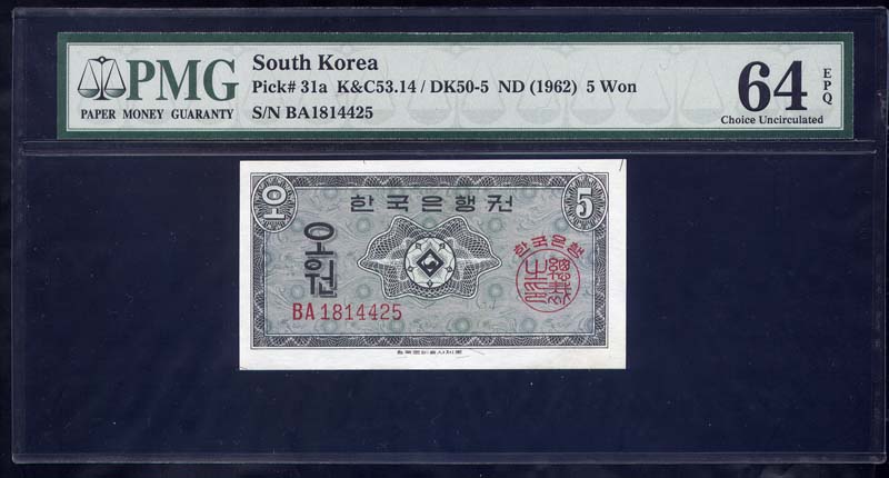 한국은행 5 원권 Bk 기호 영제 PMG 65 EPQ