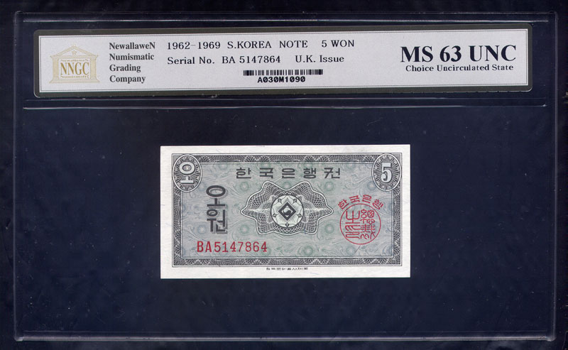 한국은행 5 원권 영제 초판 BA기호 NNGC MS 63 UNC