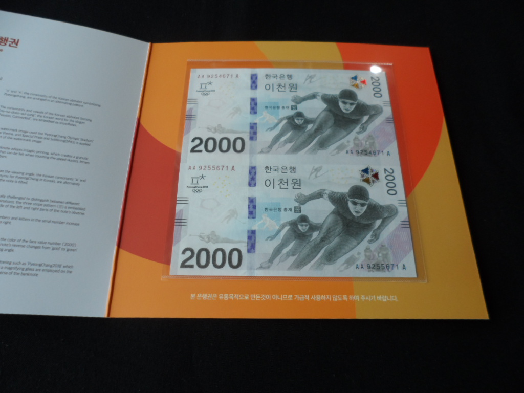 2018평창올림픽대회지폐은행권 2000원권2매연결형AAA