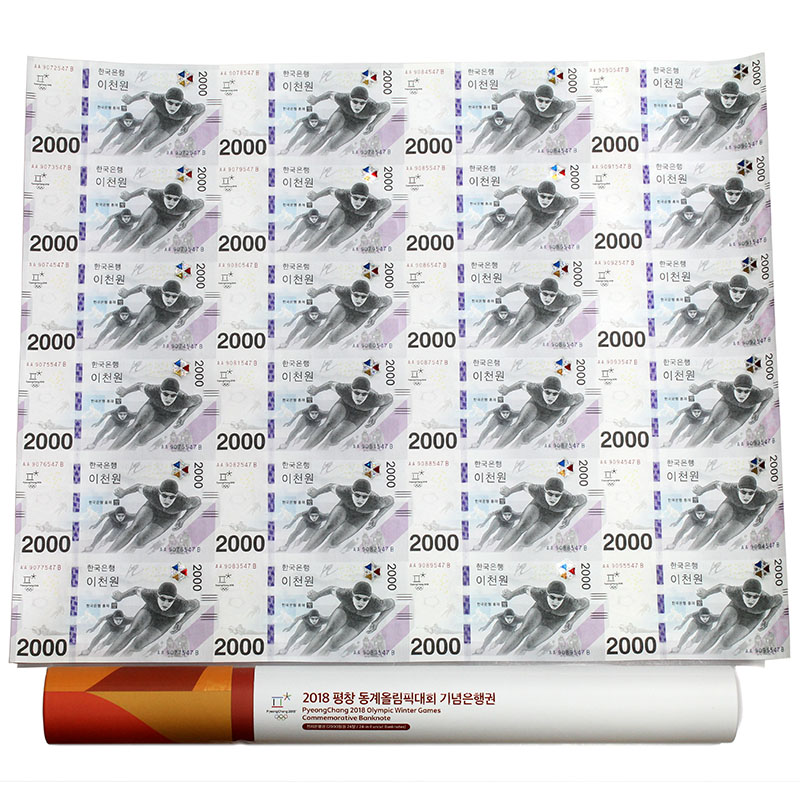 2018 평창 동계올림픽대회 기념은행권 2,000원권 24 매전지형 연결권