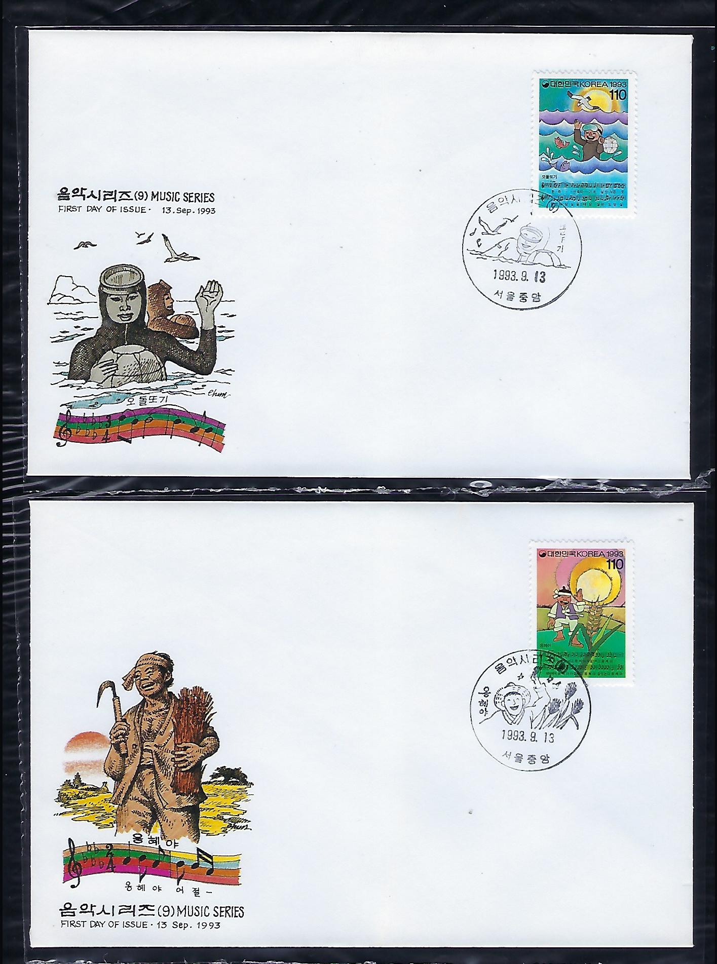 1993`음악 시리즈 제 9 집 우표 초일 봉투(FDC) 2완