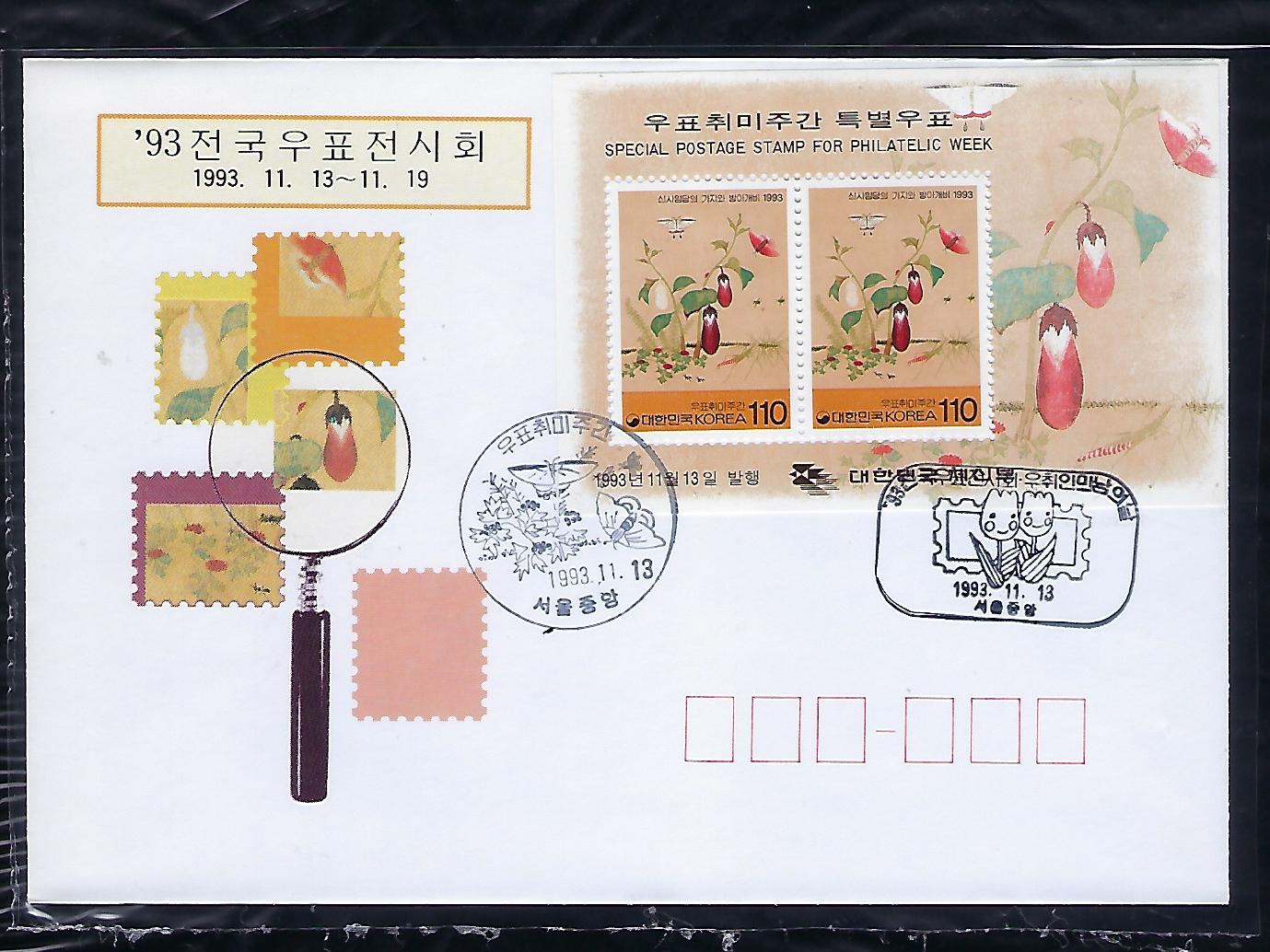 1993년 우표 취미주간 우표 시트 초일 봉투(FDC)