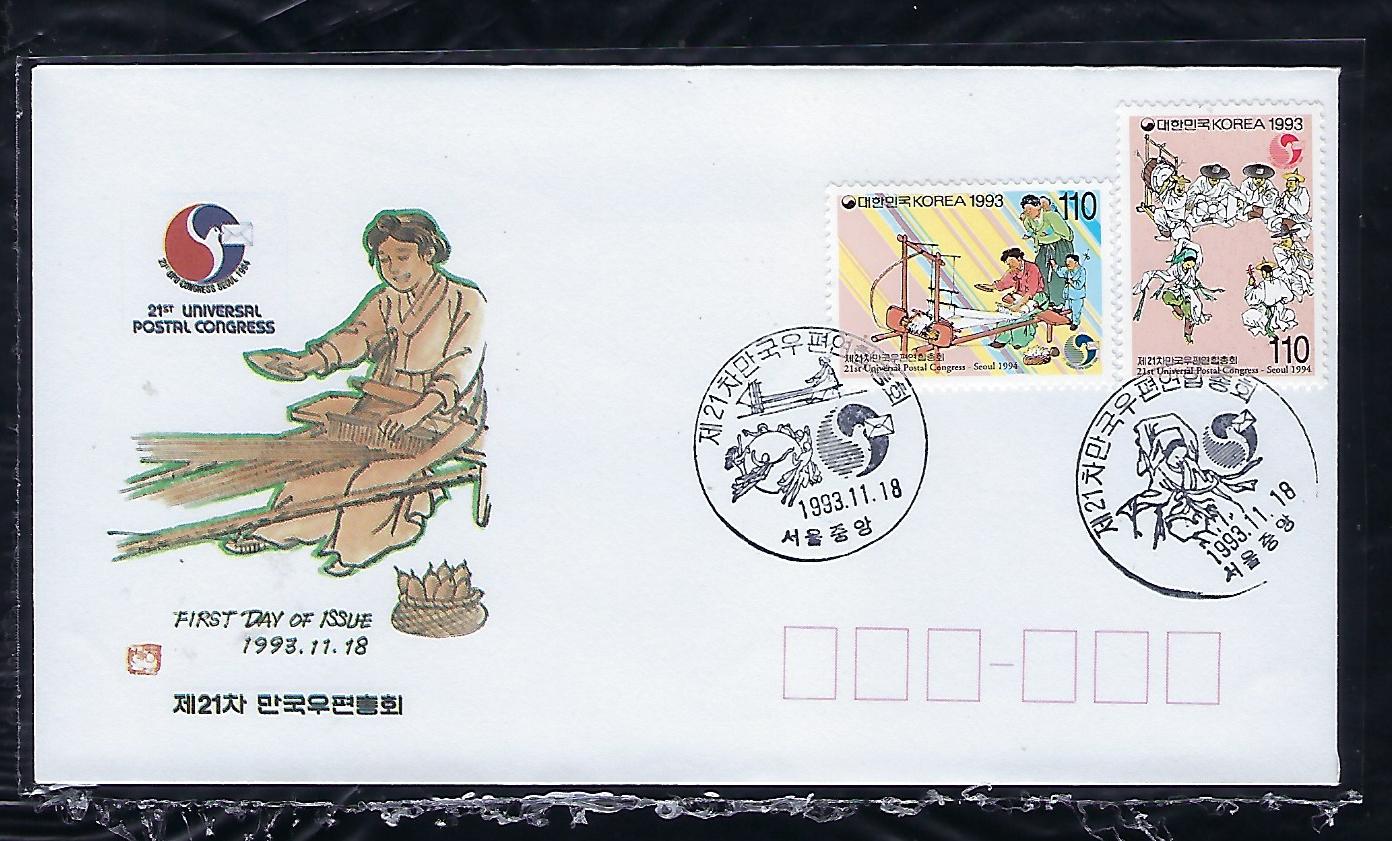 1993년 제 21차 만국 우편 연합 총회 우표 초일 봉투(FDC) 2완