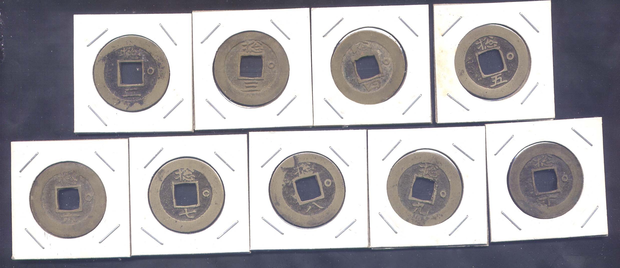 常平通寶當 當一錢 背 `營`下 `數字順` 左;日票 4종234A