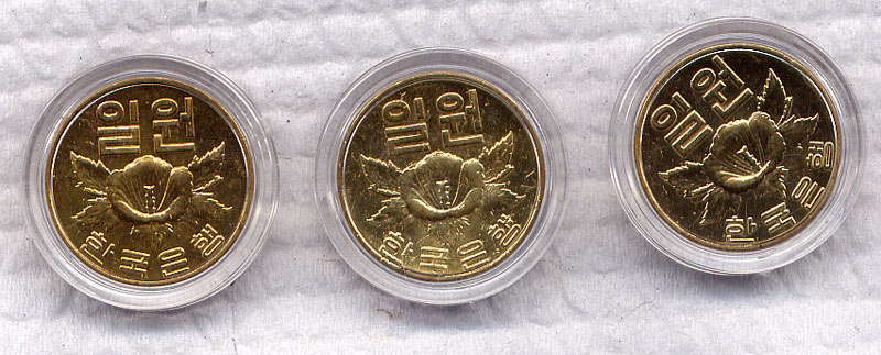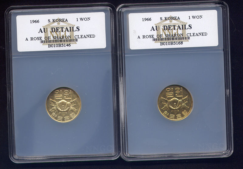 1966년 한국은행 가 1원 주화 준미사용품 NNGC AU 로테이션 135` 에러