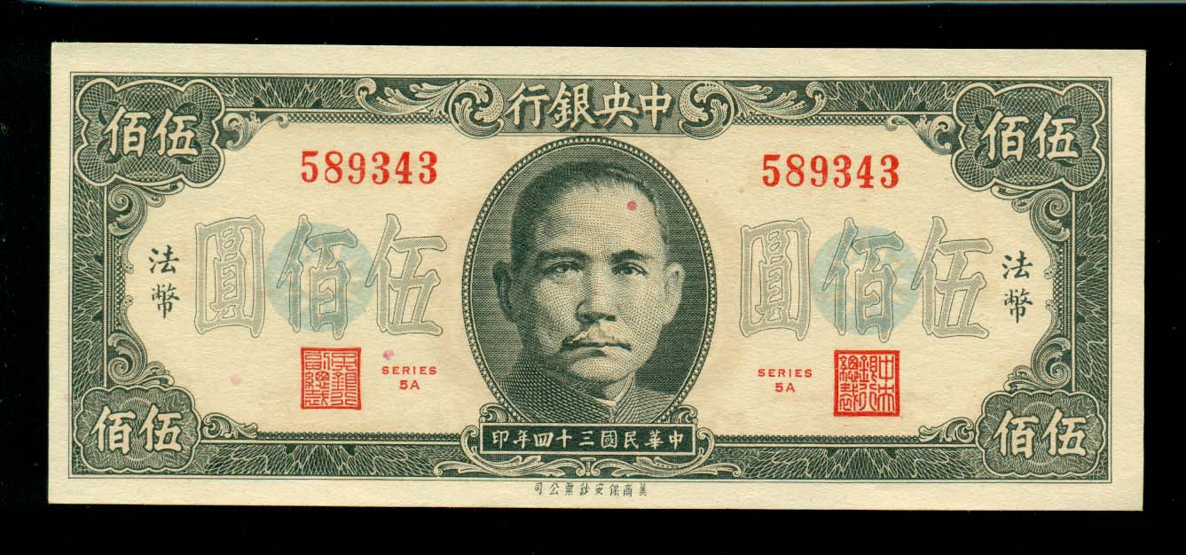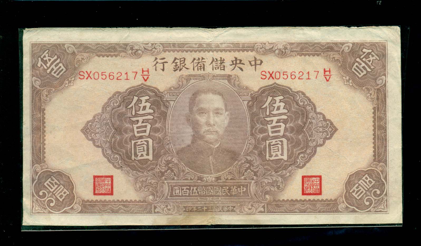 中央儲備銀行 500원권 中華民國三十二年 미品