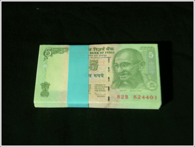 인도 지폐 5 루피 (2009년) 100장 제다발