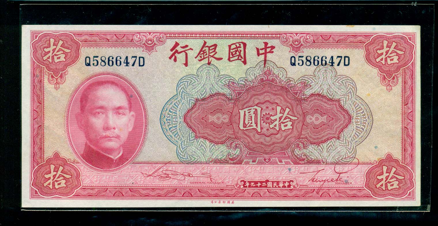 中國銀行 10원권 中華民國 二十九年 未使用品