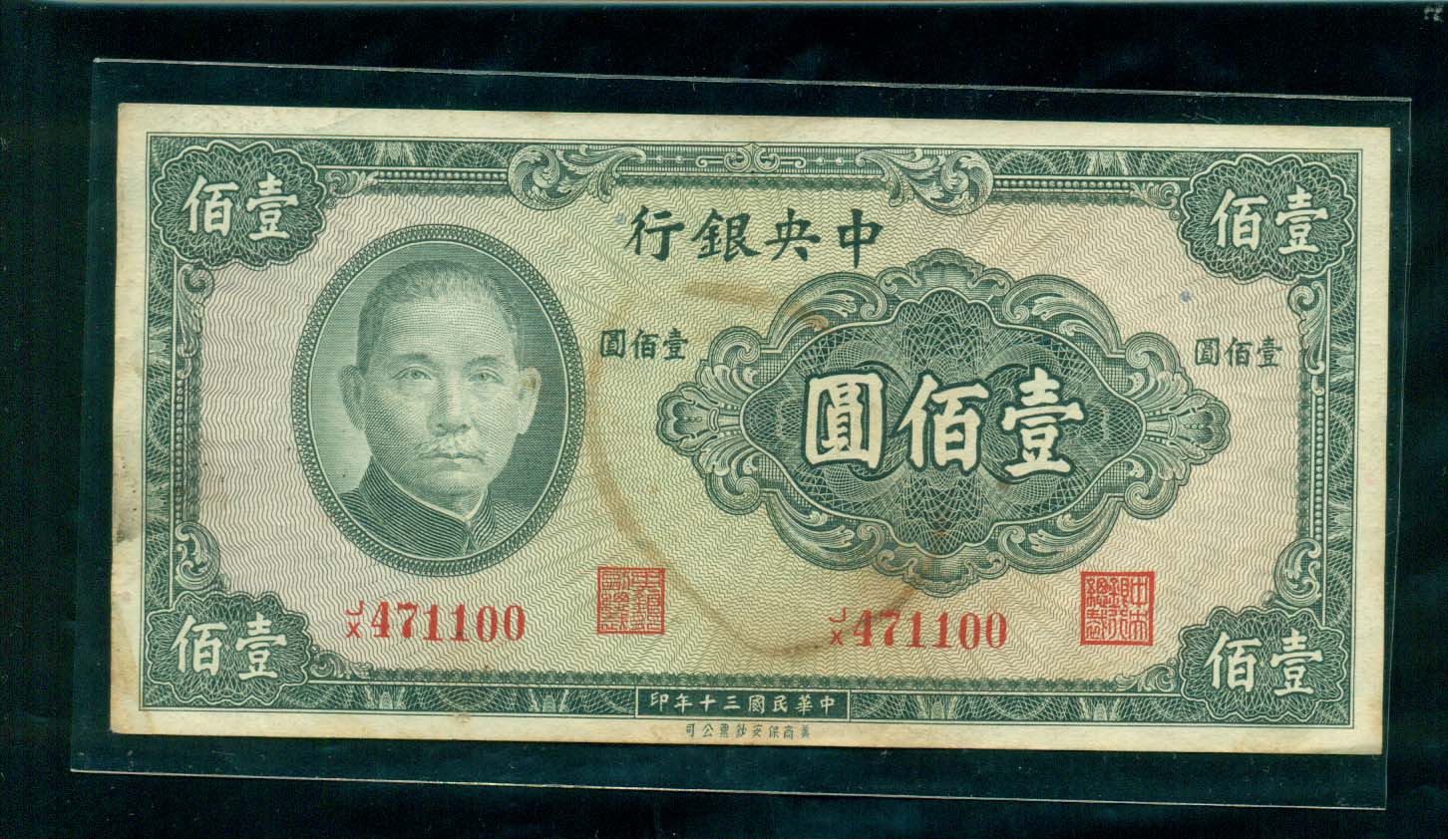 中央銀行 100원권 中華民國三十年 ++극미