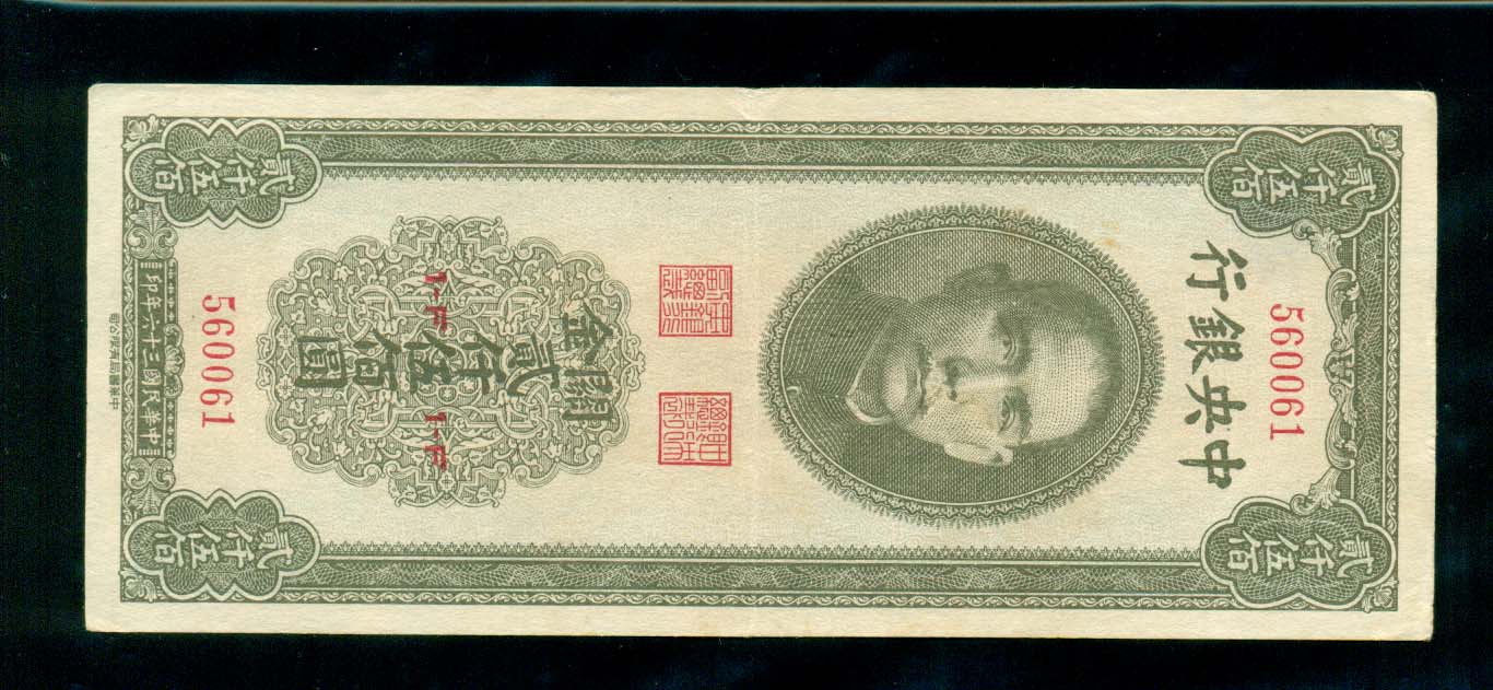中央銀行 2500원권 中華民國三十六年 +++극미品
