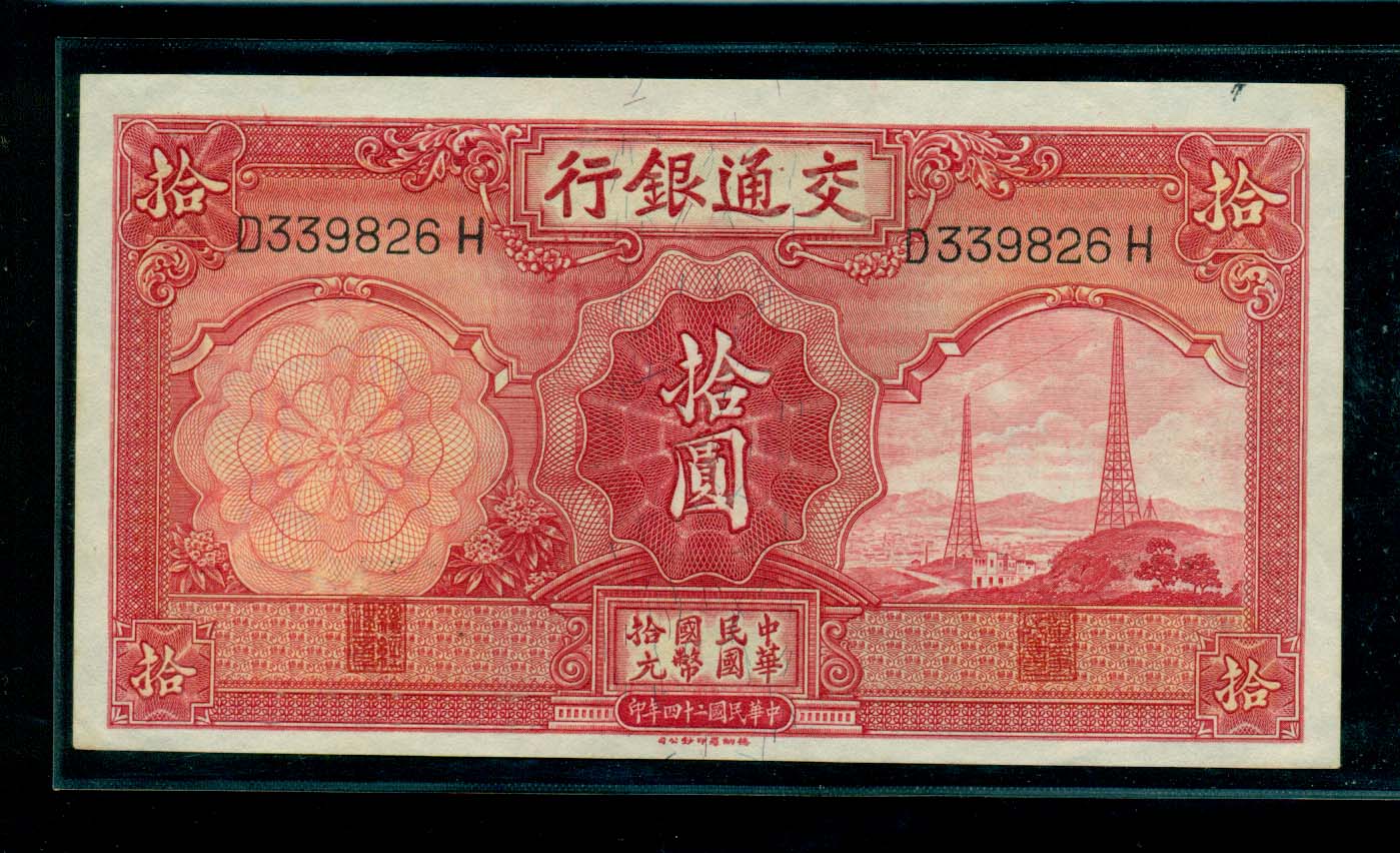 交通銀行 10원권 中華民國 二十四年 1935 未使用品