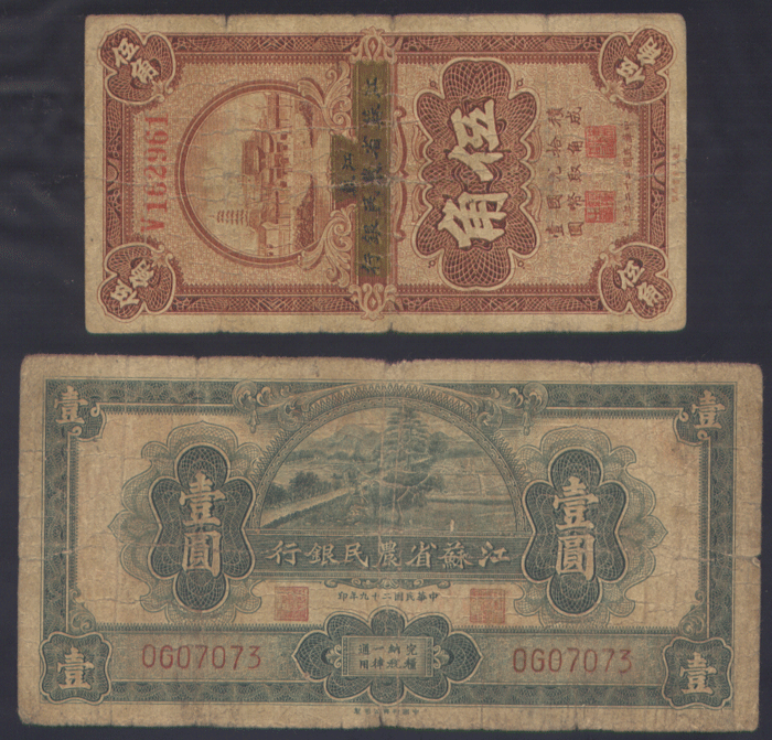 중국 江蘇省農民銀行 伍角,壹圓 2장