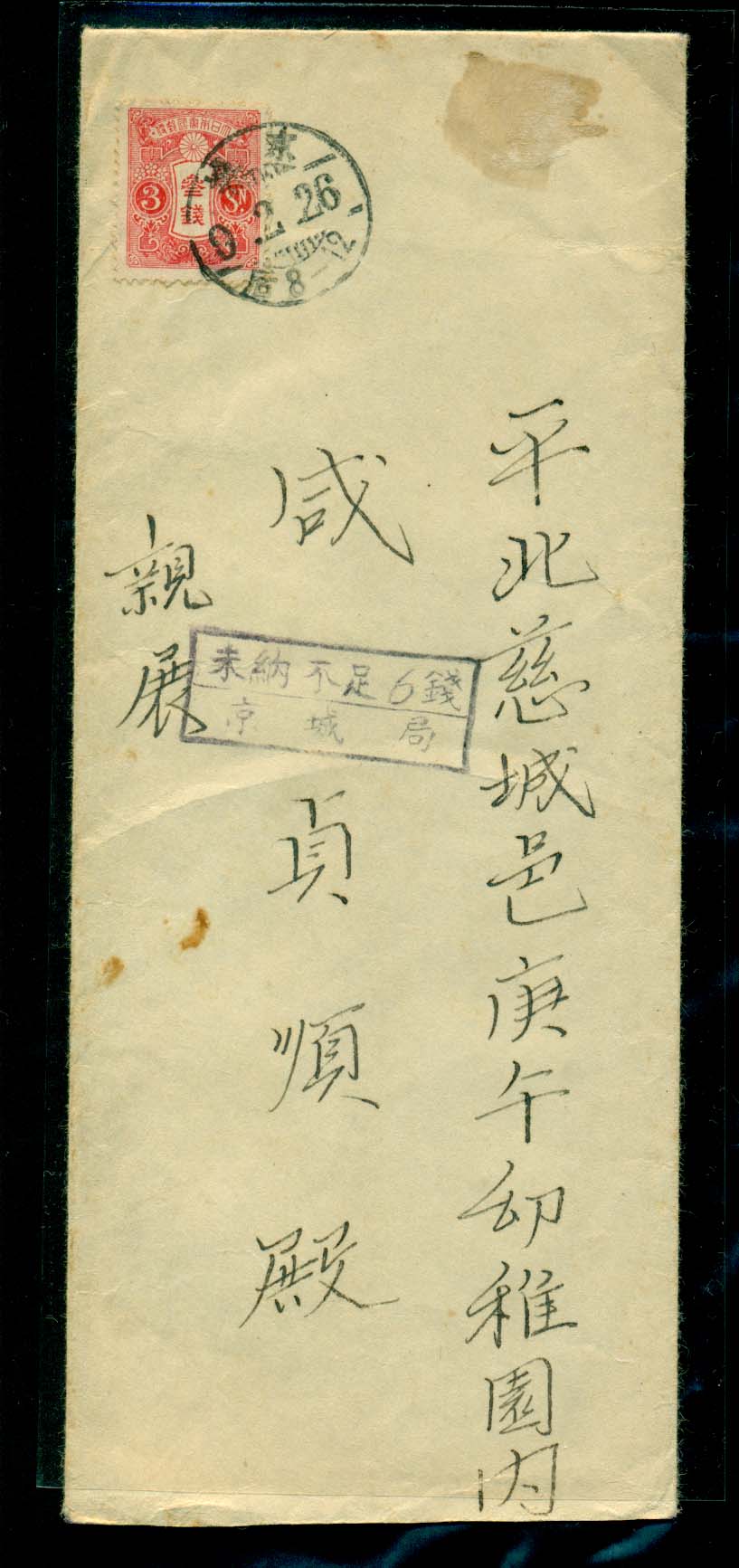 1912년 5월 25일 일부인 일본우표 3전 실체